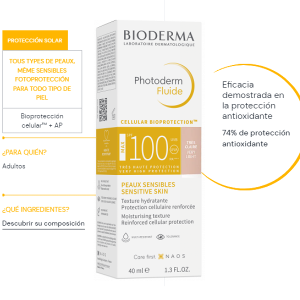 Bioderma Photoderm Protector Solar Fluide Max Spf 100 Tono Very Light X 40Ml