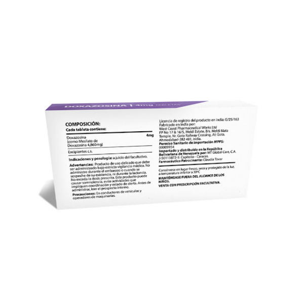 Doxazosina 4Mg X 30 Tabletas Mt Global