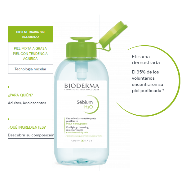 Bioderma Sebium-H2O Limpiadora Purificante X250Ml. Dermabel