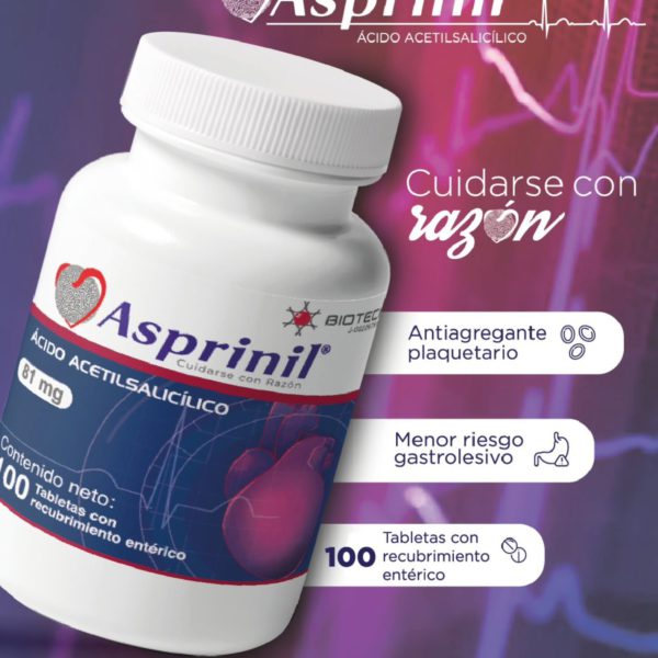 Asprinil Ácido Acetilsalicílico 81Mg X 100 Tabletas Biotech