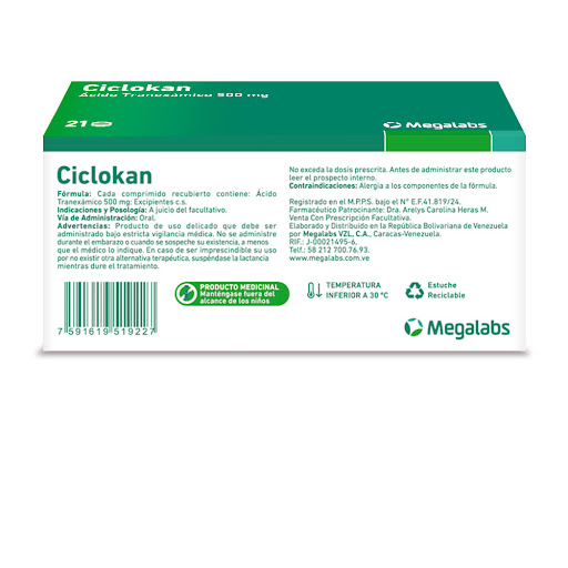 Ciclokan Ácido Tranexámico 500mg x 21 Comprimidos - Megalabs