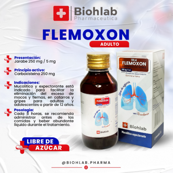 Flemoxon Carbocisteína Jarabe Adulto 250Mg/5Ml Sin Azúcar X 100Ml Biohlab