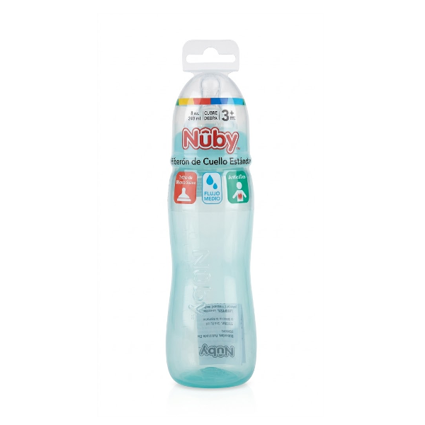 Nuby Tetero De Cuello Estandar 3+M 8 Onzas Flujo Medio 240Ml