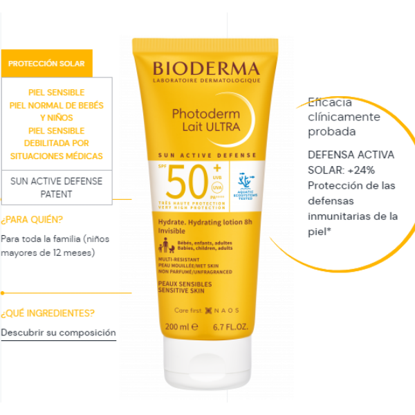 Bioderma Photoderm Lait Ultra Protector Solar 50Spf 200Ml