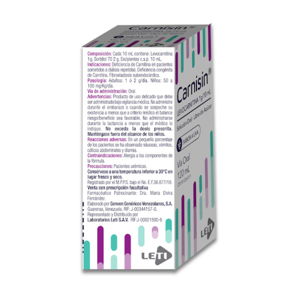 Carnisin Levocarnitina Jarabe 1Gr/10Ml X 120Ml Leti
