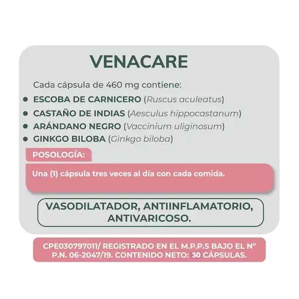 Venacare 460Mg X 30 Cápsulas Herbaplant