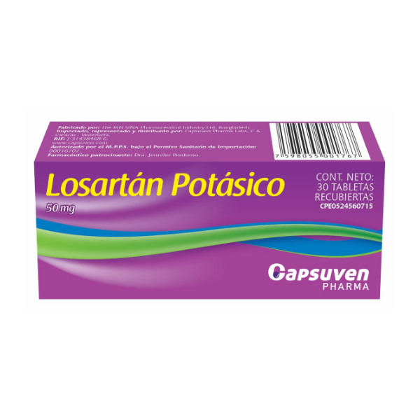 Losartán Potásico 50Mg X 30 Tabletas Capsuven