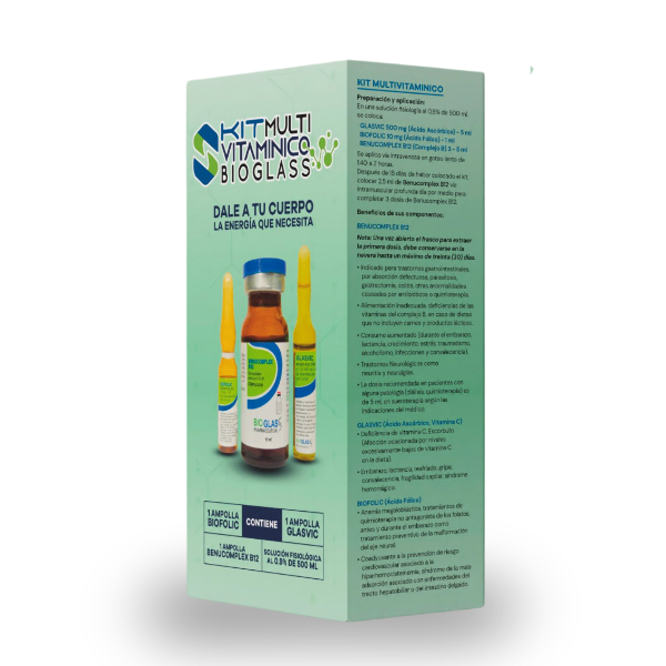 Kit Multivitaminico (Vitamina C - Complejo B - Ácido Fólico) + Solucion 0.9% Bioglas