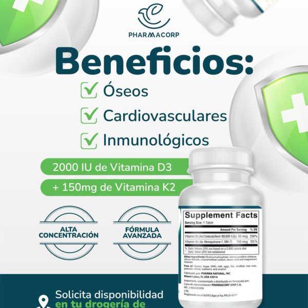 Vitamina D3 2.000Ui + Vitamina K2 50Mcg. X 30 Capsulas Pharmacorp
