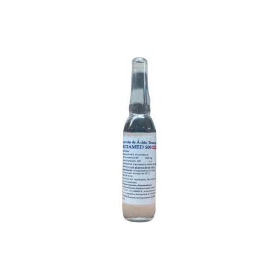 Ampolla de ácido tranexámico, utilizado para tratar trastornos de la coagulación y manchas en la piel.