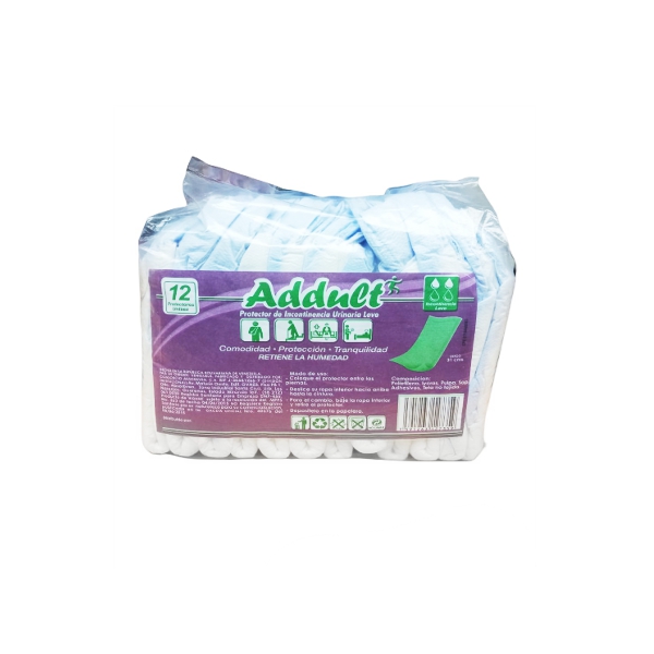 Protectores de Incontinencia para adultos superabsorbentes Marca Adult. Contiene 12 Unidades