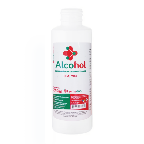 Alcohol original de farmadon:Antiséptico y desinfectante tópico, agente limpiador antibacteriano para cortes y laceraciónes menores, para la preparación de piel antes de una inyección.