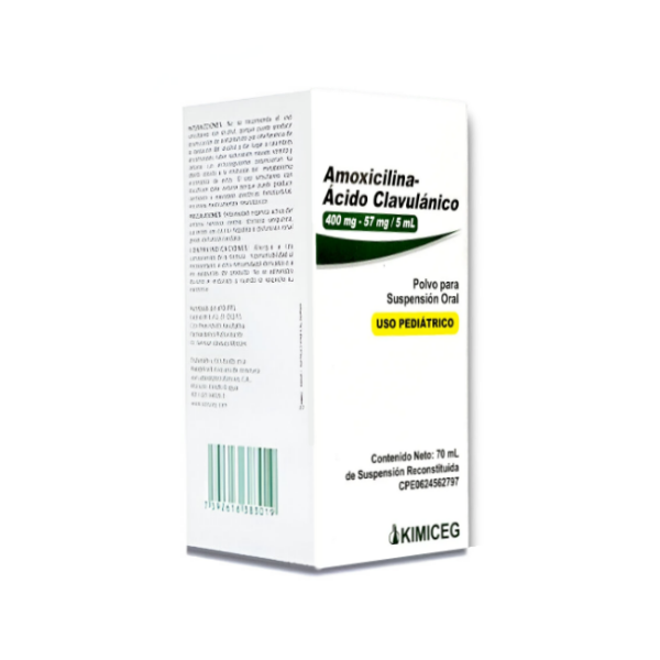 Amoxicilina +Ácido Clavulánico Suspensión Polvo 400Mg-57Mg/5Ml X 70Ml. Kimiceg