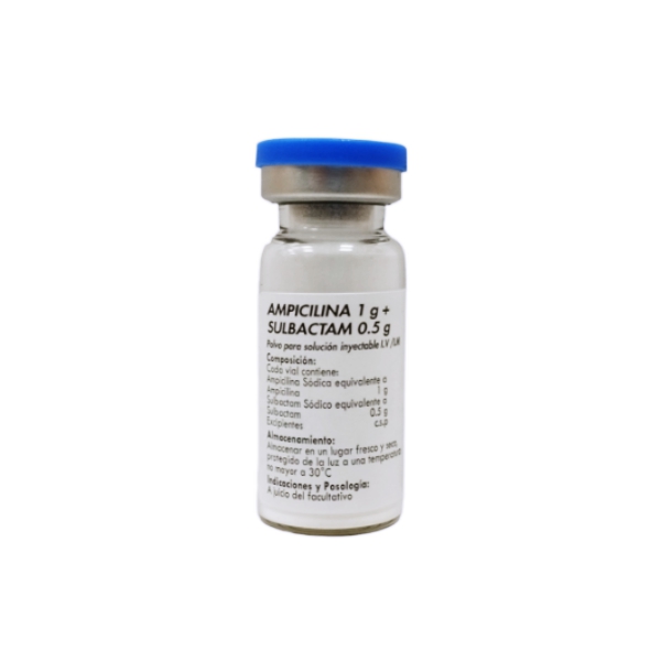 La ampolla de Ampicilina Sulbactam de Drotafarma contiene una combinación de ampicilina y sulbactam en una concentración de 1.5 g. Se utiliza para el tratamiento de infecciones bacterianas sensibles a este antibiótico, proporcionando una opción efectiva para combatir tales infecciones.