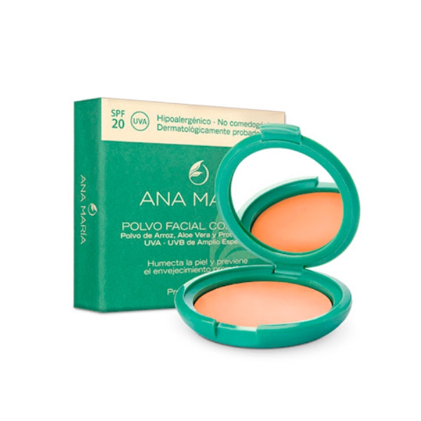 Ana Maria Polvo Facial Compacto Con Polvo De Arroz, Aloe Vera & Spf20 Tono Canela