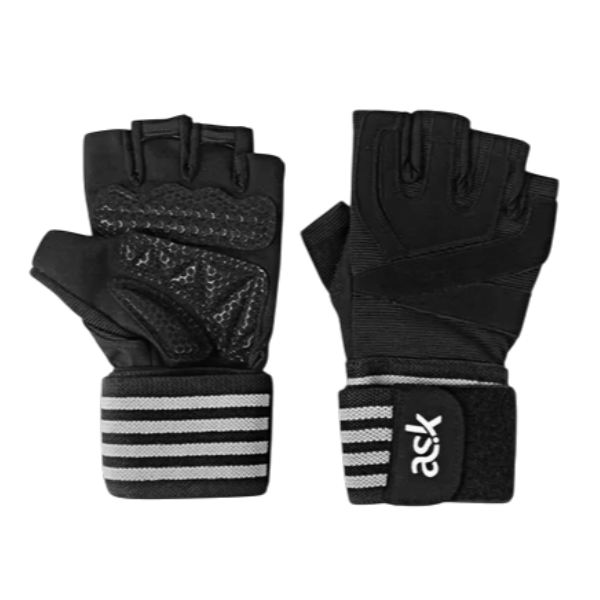 Guantes de entrenamiento Ask en talla S/M, con cinta ajustable para mayor soporte y comodidad. Fabricados en material resistente para proteger las manos y mejorar el rendimiento en el gimnasio.