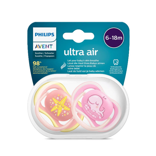 La textura ideal para una sensación de comodidad: El chupete ultra air está diseñado para que se sienta ligero y cómodo, incluida su tetina sedosa.