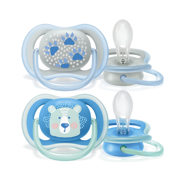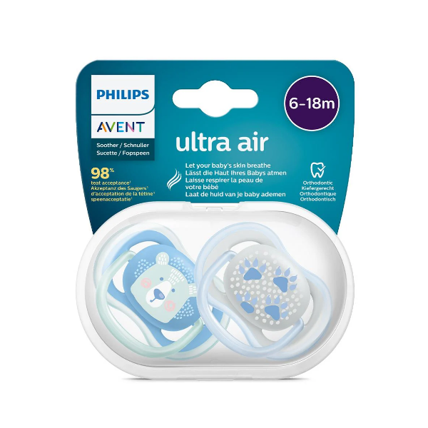 Tranquilice a su bebé con un chupón que permite que su piel respire. La colección ultra air de Philips Avent tiene orificios de gran tamaño para mantener la piel seca. Su cubierta liviana está diseñada para un flujo máximo de aire. Está disponible en varios colores y diseños.
