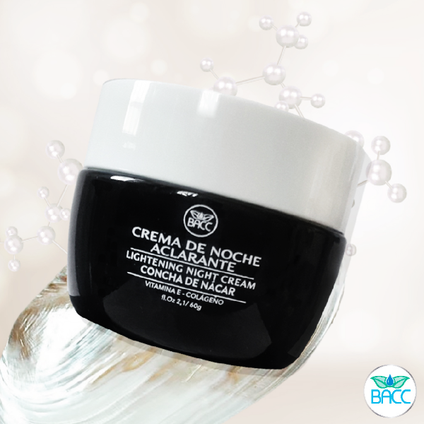 La CREMA DE NOCHE ACLARANTE CONCHA DE NÁCAR contiene nutrientes que penetran en la piel reduciendo las líneas de expresión, cicatrices y atenuando las manchas e imperfecciones de la piel. También tiene propiedades exfoliantes, nutritivas y regeneradoras. Su textura fina, no grasosa, humecta de manera profunda. El cutis lucirá saludable, suave y luminoso. Ayuda a desvanecer las manchas en la piel causadas por el embarazo, la edad y por los daños solares, por lo que es una excelente crema aclarante. Para todo tipo de piel.