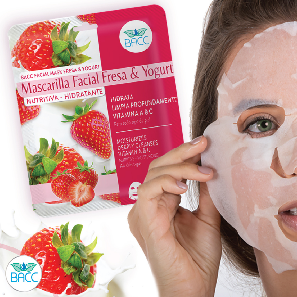 Esta es la Máscara favorita de las #BaccLovers porque combina dos importantes ingredientes: la fresa y el yogurt. La fresa contiene vitamina C, ácido fólico y salicilatos, los cuales ayudan a la circulación y oxigenación de la piel; evita la degeneración de las células y evita la aparición de arrugas.