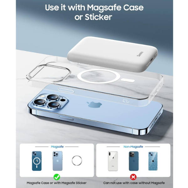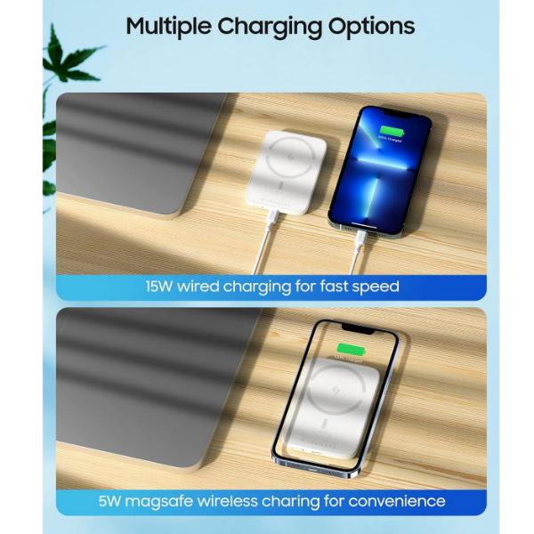 Batería externa con tecnología magnética compatible con iPhone, diseñada para una carga sin cables ni conexiones adicionales. Se adhiere fácilmente al dispositivo para extender la duración de la batería, ideal para momentos en los que no se dispone de una tomacorriente. Perfecta para el uso diario o para viajes, su diseño compacto facilita su transporte y almacenamiento. Una opción moderna y conveniente para los usuarios de iPhone.