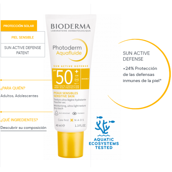 Para evitar estos efectos y no sobrecargar la piel con filtros, BIODERMA ha creado SUN ACTIVE DEFENSE, la protección solar de alta tecnología, reforzada contra los rayos UVA. Combina filtros UV y una protección biológica patentada que mejora la capacidad de la piel para defenderse y ayudar a mantener un cuidado duradero de su salud bajo el sol y permitir: