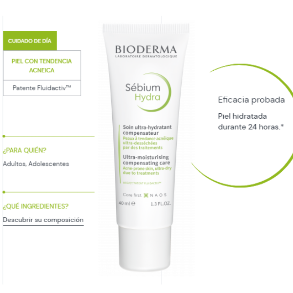 Sébium Hydra está formulado específicamente para contrarrestar temporalmente los efectos secundarios de los tratamientos biológicos: