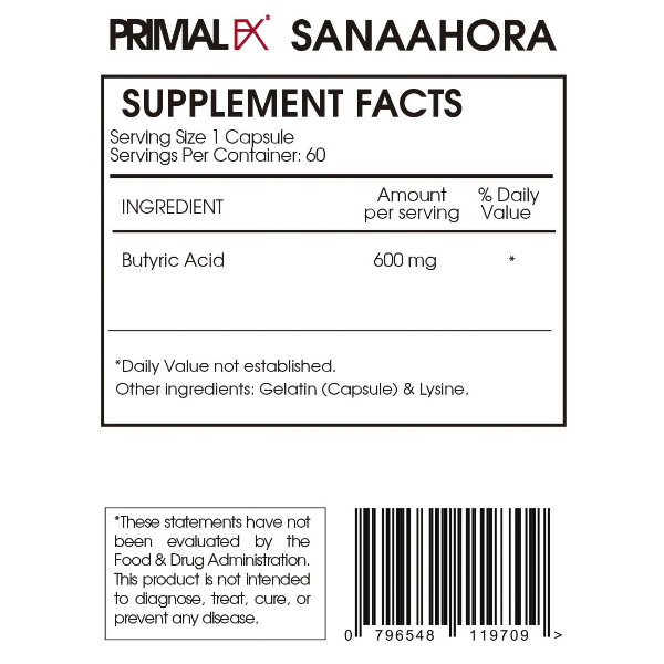 Butyrate + Butyric A X 60 Cápsulas Primal Fx