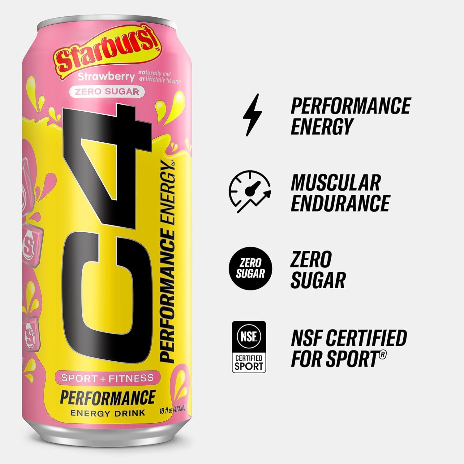 C4 Performance Energy Drink Starburst Strawberry Sin Azúcar 473Ml
