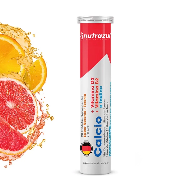 Calcio+Vitamina D3 + Vitamina B2 Sabor Naranja+Toronja X 20 Tabletas Efervecentes Nutrazul