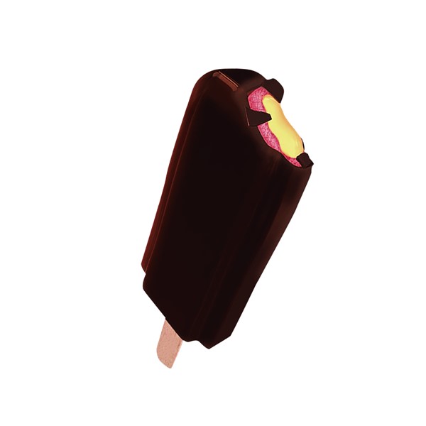 Helado de paleta sabor a chocolate con un relleno delicioso de fresa y leche condensada