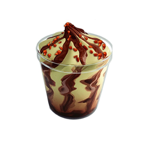 Delicioso helado en presentación de vasito, sabor a mantecado y chocolate