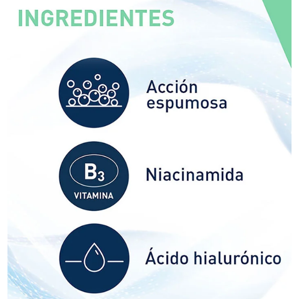 El limpiador facial en espuma CeraVe contiene ceramidas, ácido hialurónico y niacinamida, y está formulado para ayudar a mantener la barrera protectora de la piel, retener la humedad y calmarla.