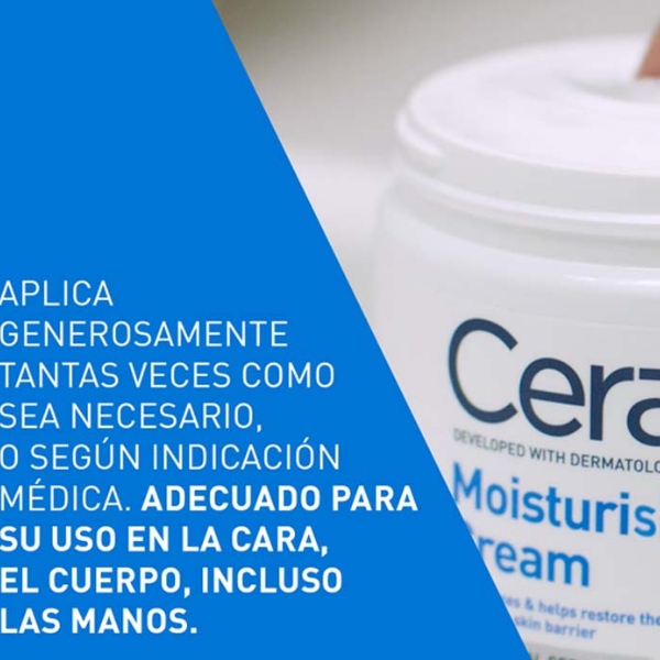 Desarrollada con dermatólogos y adecuada para la piel seca y muy seca del rostro y cuerpo, esta crema hidratante rica, no grasa y de rápida absorción, cuenta con nuestra tecnología patentada MVE Delivery Technology para liberar un flujo constante de ingredientes hidratantes durante todo el día y la noche. La Crema hidratante CeraVe con ceramidas no contiene perfume.
