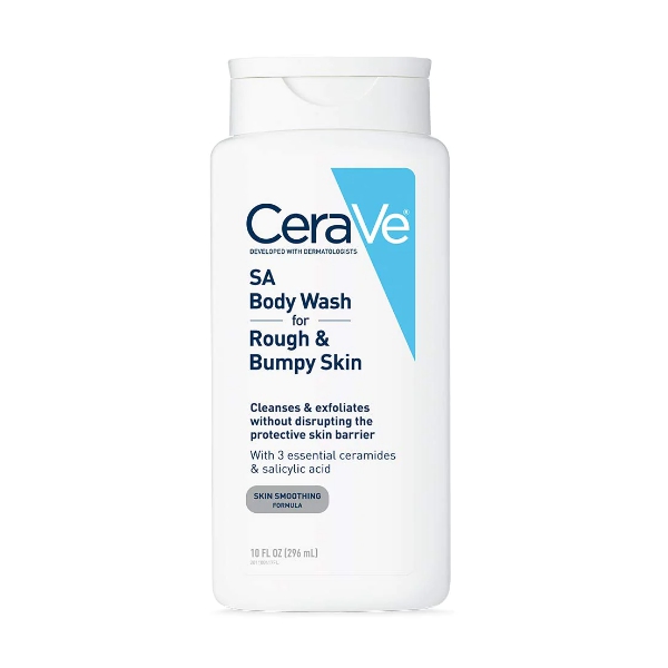 La exfoliación es una de las formas más eficaces de mejorar la textura de la piel. Recomendamos un gel de baño exfoliante suave con ácido salicílico formulado con ceramidas para ayudar a restaurar la barrera natural de la piel, ácido hialurónico hidratante y niacinamida . El gel de baño CeraVe SA para pieles ásperas y con bultos combina estos ingredientes para ayudar a suavizar y mejorar la piel áspera y con bultos .