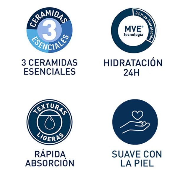 - Tecnología MVE: Este sistema de suministro patentado libera continuamente ingredientes humectantes para una hidratación de 24 horas