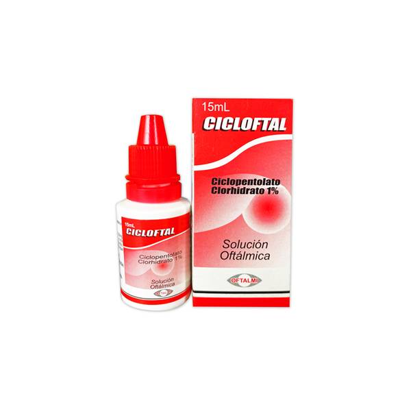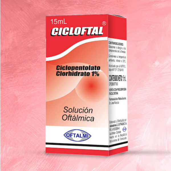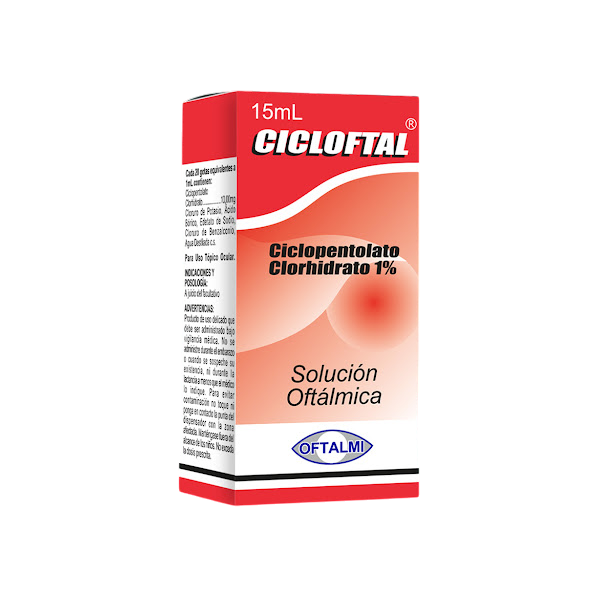 Ciclopentolato 1%. Utilizado en exámenes oftálmicos para dilatar las pupilas.