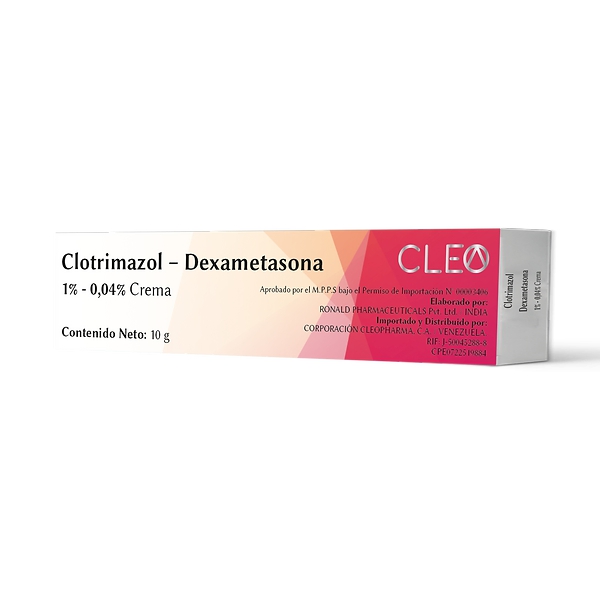 Crema que combina clotrimazol al 1% y dexametasona al 0.04%, presentada en una presentación de 10 gramos. Utilizada para tratar infecciones fúngicas y reducir la inflamación y la picazón asociada.
