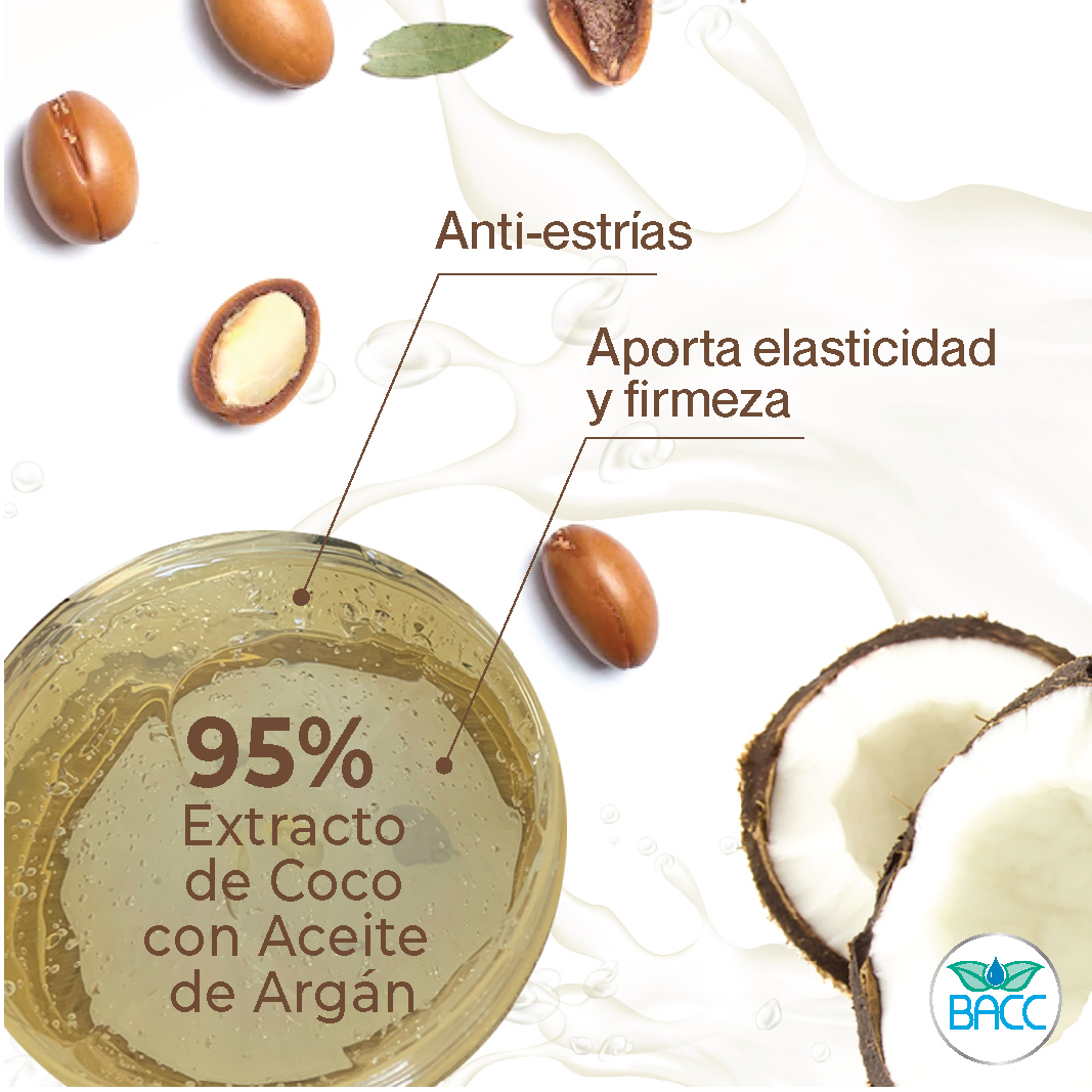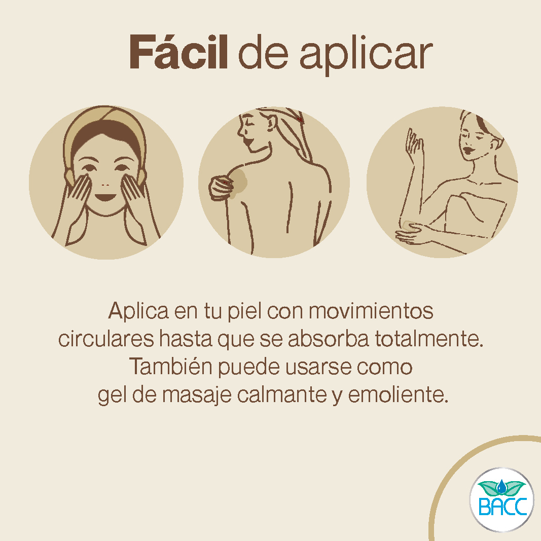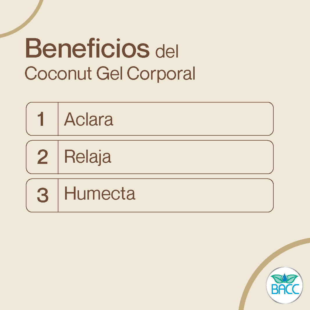 Aplica el Gel de Coco de BACC con movimientos circulares hasta que se absorba totalmente en tu piel.