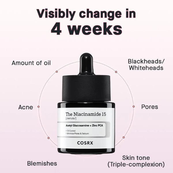 El Suero de Niacinamida 15 Control de Grasa de Cosrx en presentación de 20 ml es un suero diseñado para controlar el exceso de grasa y minimizar los poros. Formulado con un 15% de niacinamida, este suero ayuda a regular la producción de sebo, reducir la apariencia de los poros y mejorar el tono de la piel. Además, contiene ingredientes hidratantes que mantienen la piel equilibrada y saludable. Su textura ligera y de rápida absorción lo hace ideal para ser utilizado en la rutina de cuidado diario, especialmente en pieles propensas a la grasa y el acné. Perfecto para quienes buscan una piel más mate y uniforme.