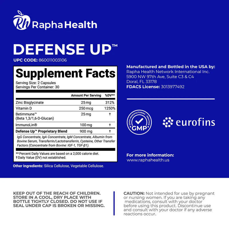 Mejore su salud inmunitaria con Defense Up, el suplemento de primera calidad diseñado para reforzar las defensas naturales de su organismo. Nuestra fórmula incluye ingredientes clave de apoyo inmunitario como el zinc y la vitamina D, combinados con el poder de ImmunoLin®, una mezcla especializada que mejora la respuesta inmunitaria. Defense Up es rico en inmunoglobulinas y proteínas bioactivas, incluyendo IgG, IgA, IgM, IgE e IgD, además de factores de transferencia adicionales para un apoyo inmunológico completo. Tanto si busca mantener una salud óptima como reforzar su sistema inmunitario, Defense Up le ofrece una potente mezcla de nutrientes para ayudarle a mantenerse protegido.