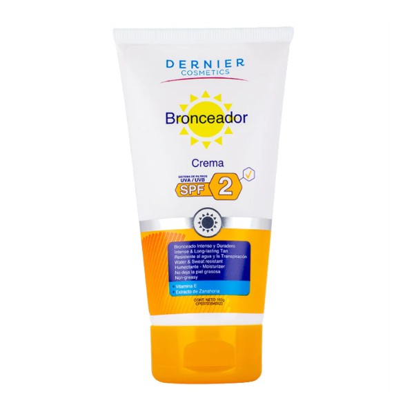 La fórmula del bronceador en crema de Dernier Cosmetics te ofrece un bronceado atractivo y duradero, además de humectar e hidratar la piel. No mancha y no es grasoso, de fácil aplicación, resistente al agua y la transpiración.