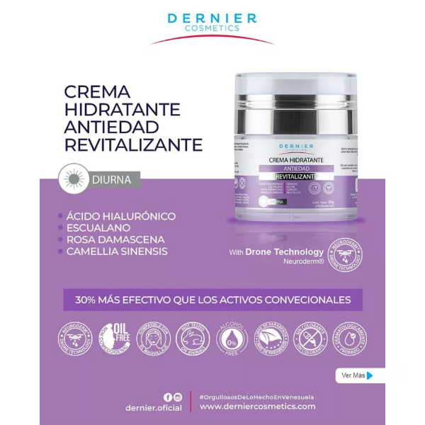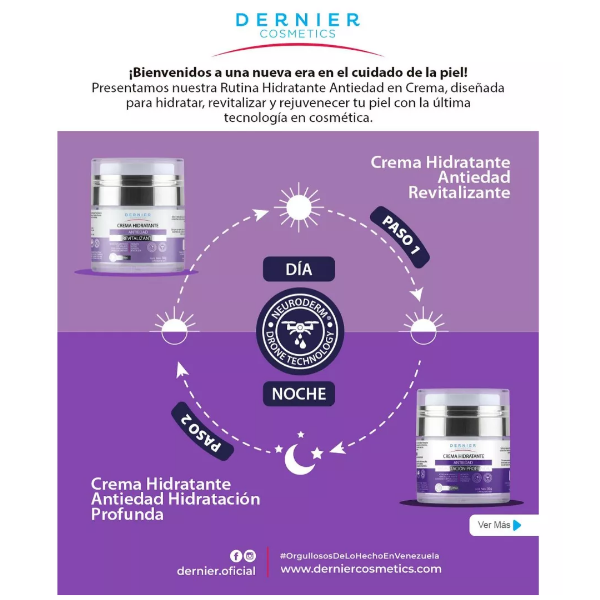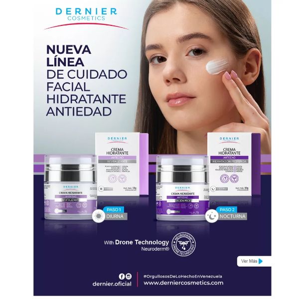 Compatibilidad Perfecta: Los sérums de Dernier, formulados con Tecnología Drone, son compatibles con la formulación y activos de nuestros Hidratantes Antiedad Diurnos. Juntos, potencian los beneficios de ambos productos.
