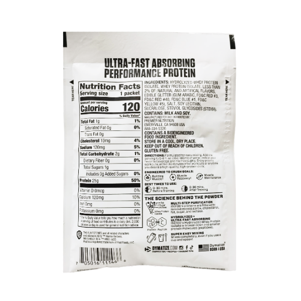 La proteína de ISO100 es una combinación de aislados de proteína de suero de leche y aislados de proteína de suero de leche hidrolizados, sin rellenos ni suplementos agregados. El aislado de proteína de suero de leche hidrolizada se dividió parcialmente en proteínas y péptidos más pequeños, lo que garantiza una digestión rápida y fácil para una absorción óptima de los aminoácidos que desarrollan los músculos.
