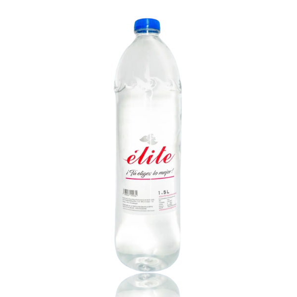 Agua mineral Elite, presentación de 1.5 litros. Ideal para mantenerte hidratado durante todo el día, ofreciendo una opción saludable y refrescante de agua pura y mineralizada.