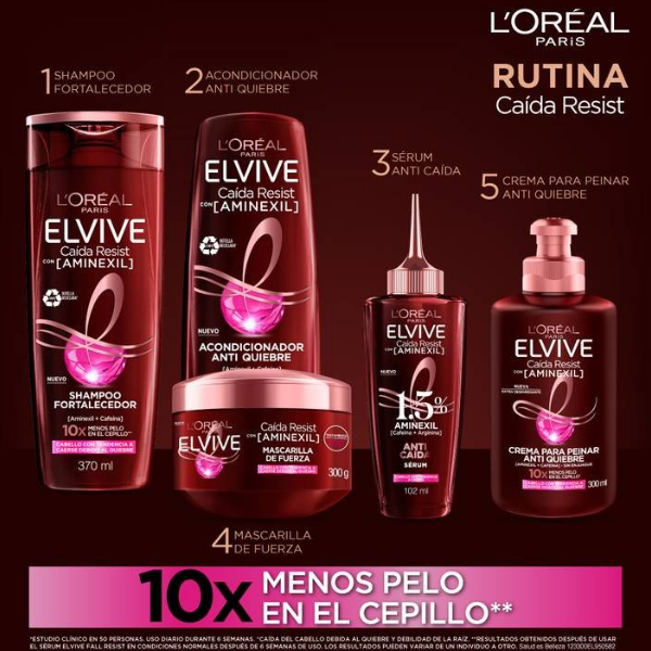 La Mascarilla para el Cabello Anticaída Elvive Caída Resist, enriquecida con Aminexil, cafeína y arginina, ofrece un eficaz tratamiento para contrarrestar la caída del cabello. Especialmente diseñada para cabello propenso a la caída debido al quiebre, este completo régimen de 6 semanas actúa como protector, fortaleciendo y mejorando el anclaje de la fibra capilar. La mascarilla capilar Elvive Caída Resist es la solución perfecta para combatir la caída del cabello y fortalecerlo desde la raíz.