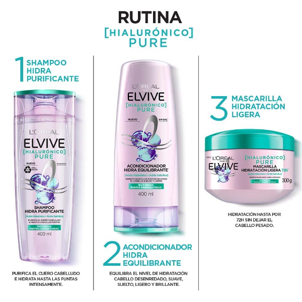 Nuevo Elvive Hialurónico Pure, control de grasa, raíces purificadas y puntas hidratadas