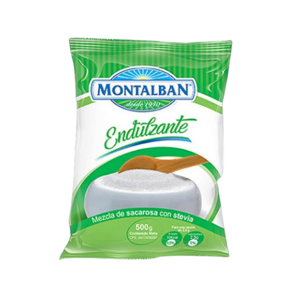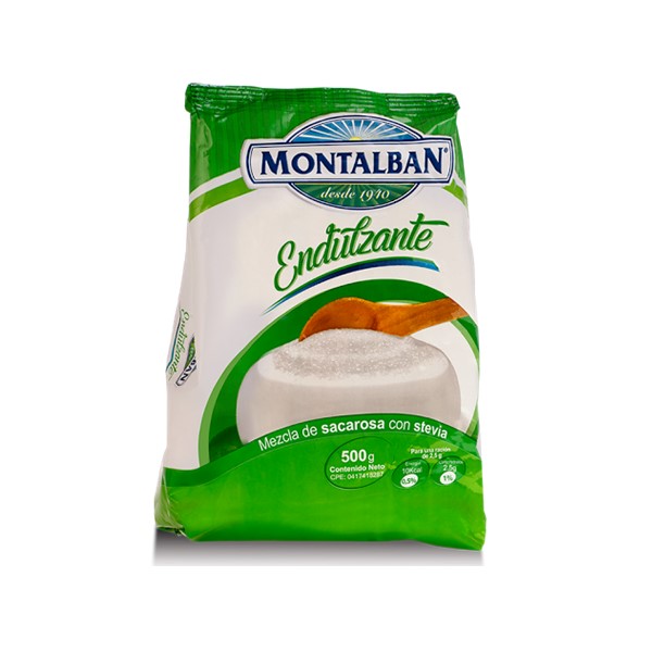 El Endulzane Montalbán es una mezcla de azúcar y stevia en la que la porción de sus ingredientes permite que su aporte calórico sea la mitad que del azúcar, pero además esta composición lo convierte en un endulzante de origen natural