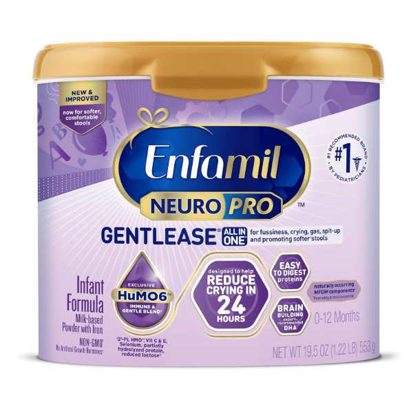 Mezcla de fibra prebiótica patentada: enfamil neuropro gentlease tiene prebióticos pdx y gos para ayudar a aliviar las molestias al defecar y promover una deposición saludable y frecuente.