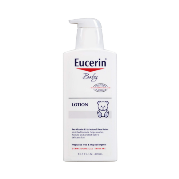Para un régimen completo de cuidado de la piel del bebé, pruebe Eucerin Baby Wash & Shampoo durante el baño.